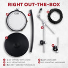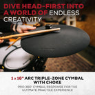 All cymbals swing freely and respond naturally to your every nuance: triple zone 14" hi-hat, 18" ride and two 16" crashes deliver the tonality and resolution needed for any stick and foot technique.