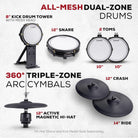 Tension can be adjusted on all six mesh heads so you can set the rebound and expressiveness to your preference - unnatural hotspots are eliminated by Alesis’ patented anti-hotspot sensor design.