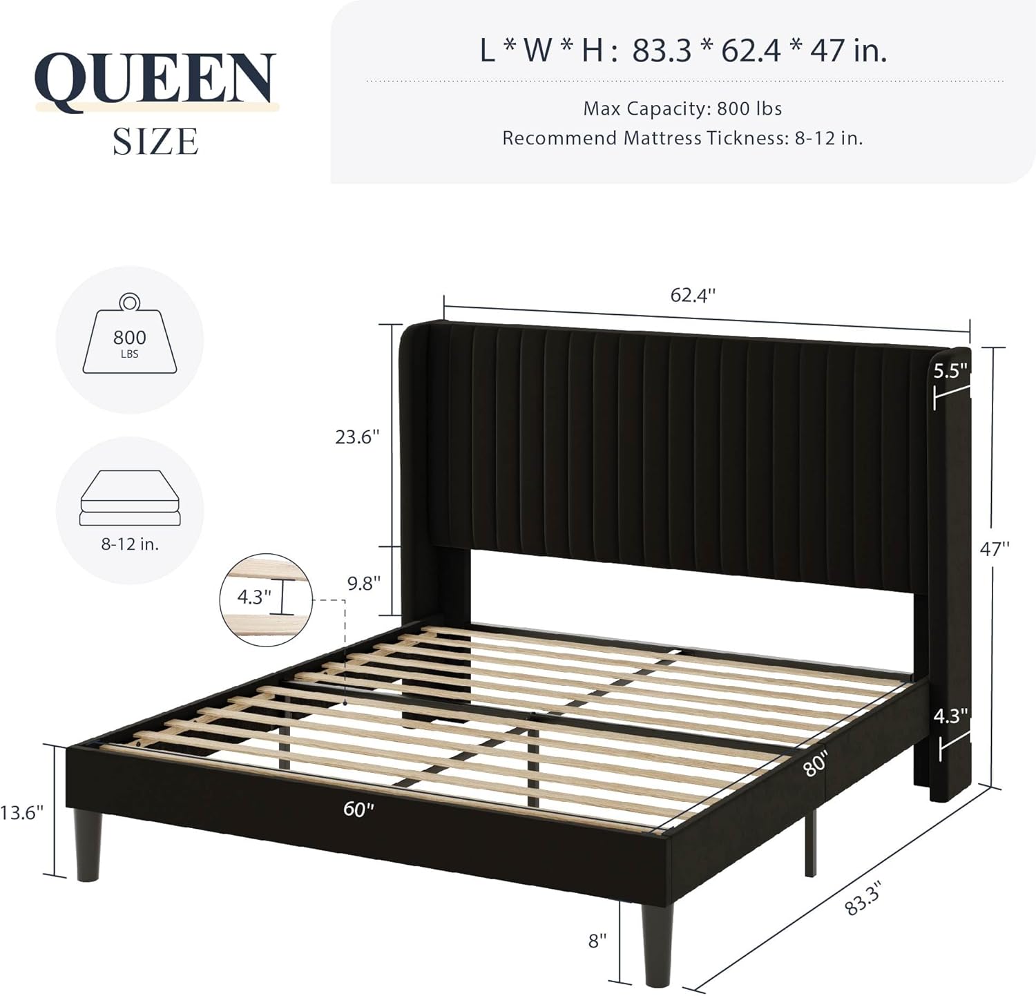 - Comfortable and Elegant: Designed in a modern wingback headboard, smooth velvet, and soft sponge wrap the entire bed frame, which will add sophisticated style to any bedroom