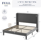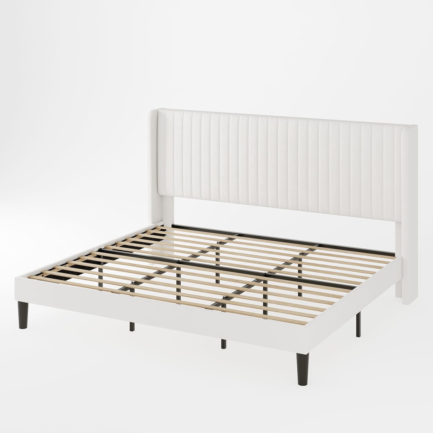 Allewie Full Size Velvet Bed Frame/Vertical Channel Tufted Wingback Headboard/Upholstered Platform Bed/Strong Wooden Slats/No Box Spring Needed/Easy Assembly/White