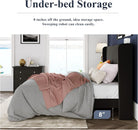 - Thoughtful Design: 8" under-bed storage space is perfect for storing extra odds and ends. The sound-quieting features of the foot pads and sound-absorbing foam ensure a good night’s sleep
