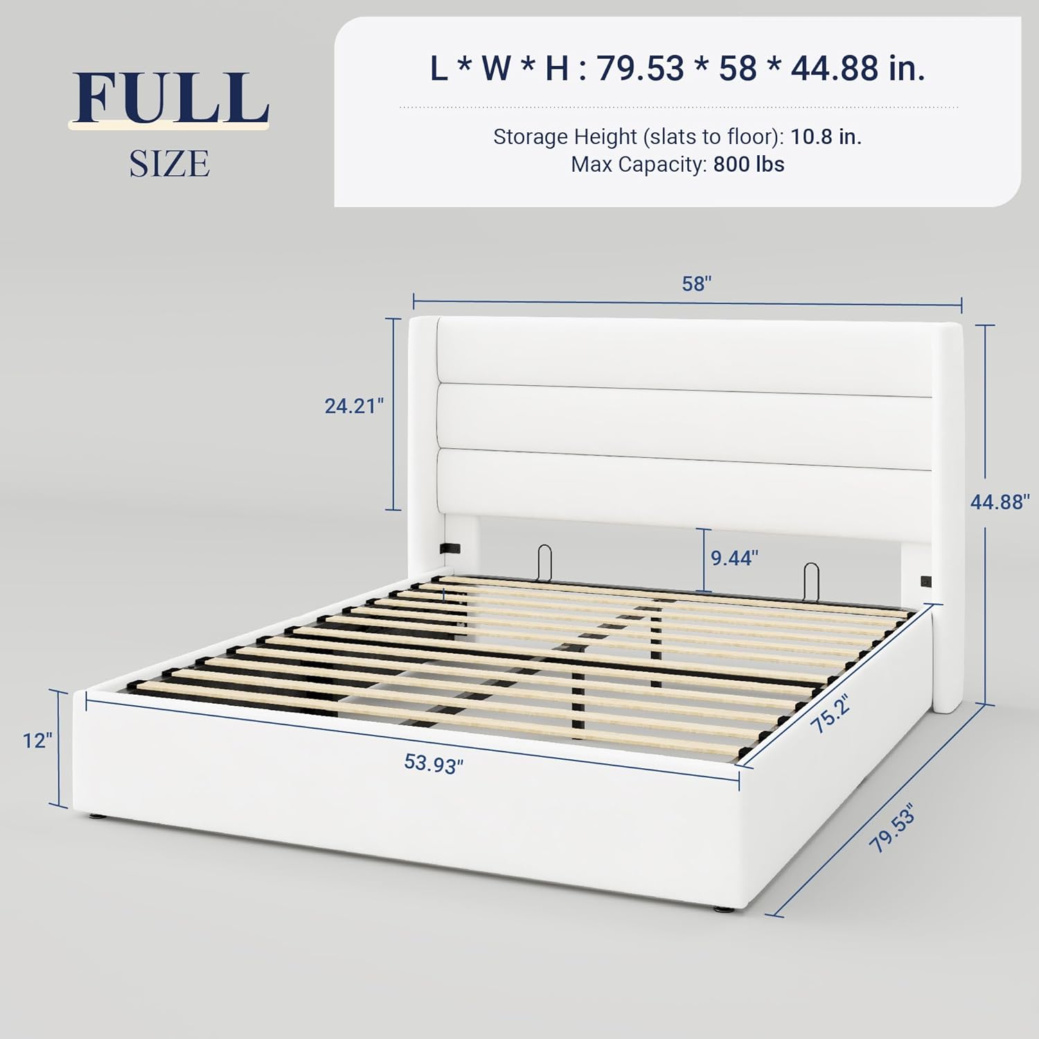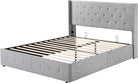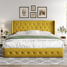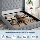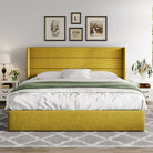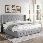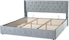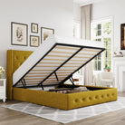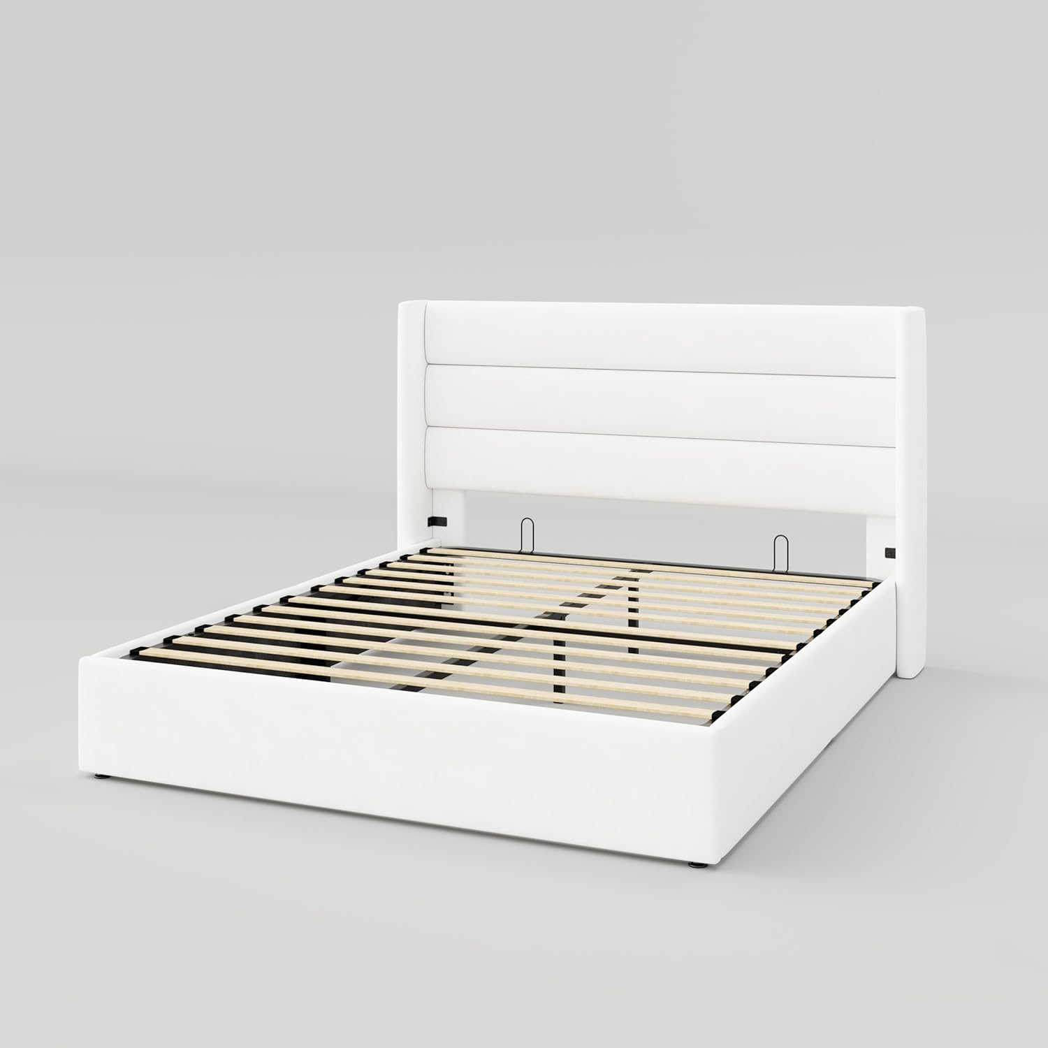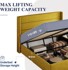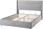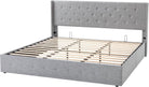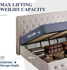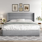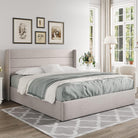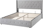 Allewie Queen Size Lift Up Storage Bed, Modern Wingback Headboard, Hydraulic Support, No Box Spring Needed, Light Beige