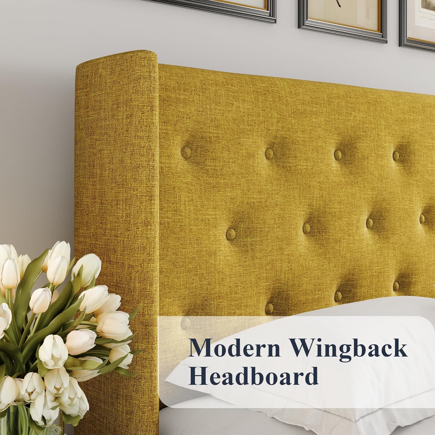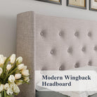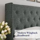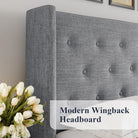 - Elegant Headboard: High wingback headboard adds elegant aesthetics to your bedroom. Horizontal channel pattern illuminates stylish and minimalist trends