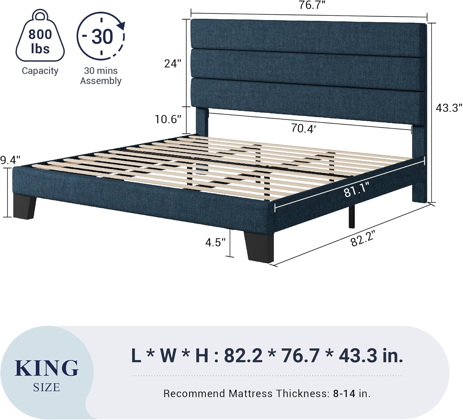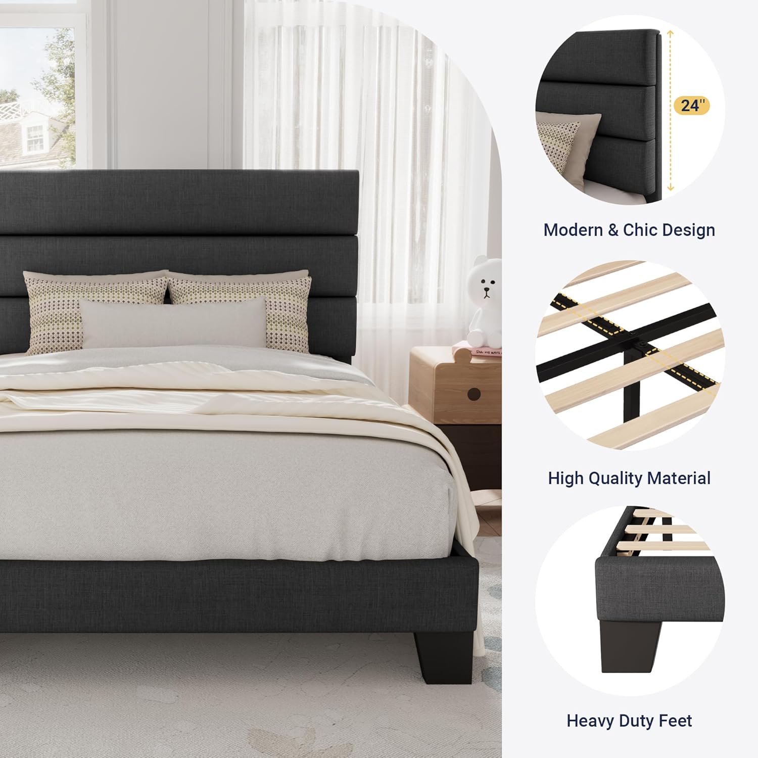 - Minimalist & Noise-Free: Bed frame queen size with a padded upholstered headboard, suitable for various decors; EVA mute bar prevents noise from friction, no squeaking or creaking
