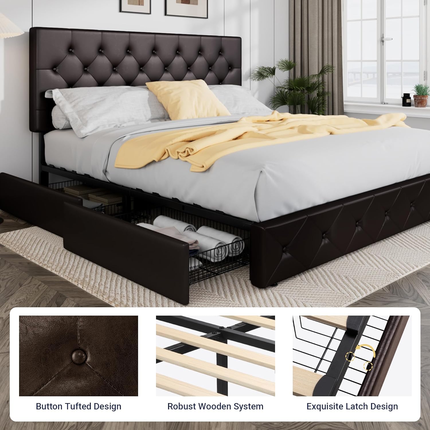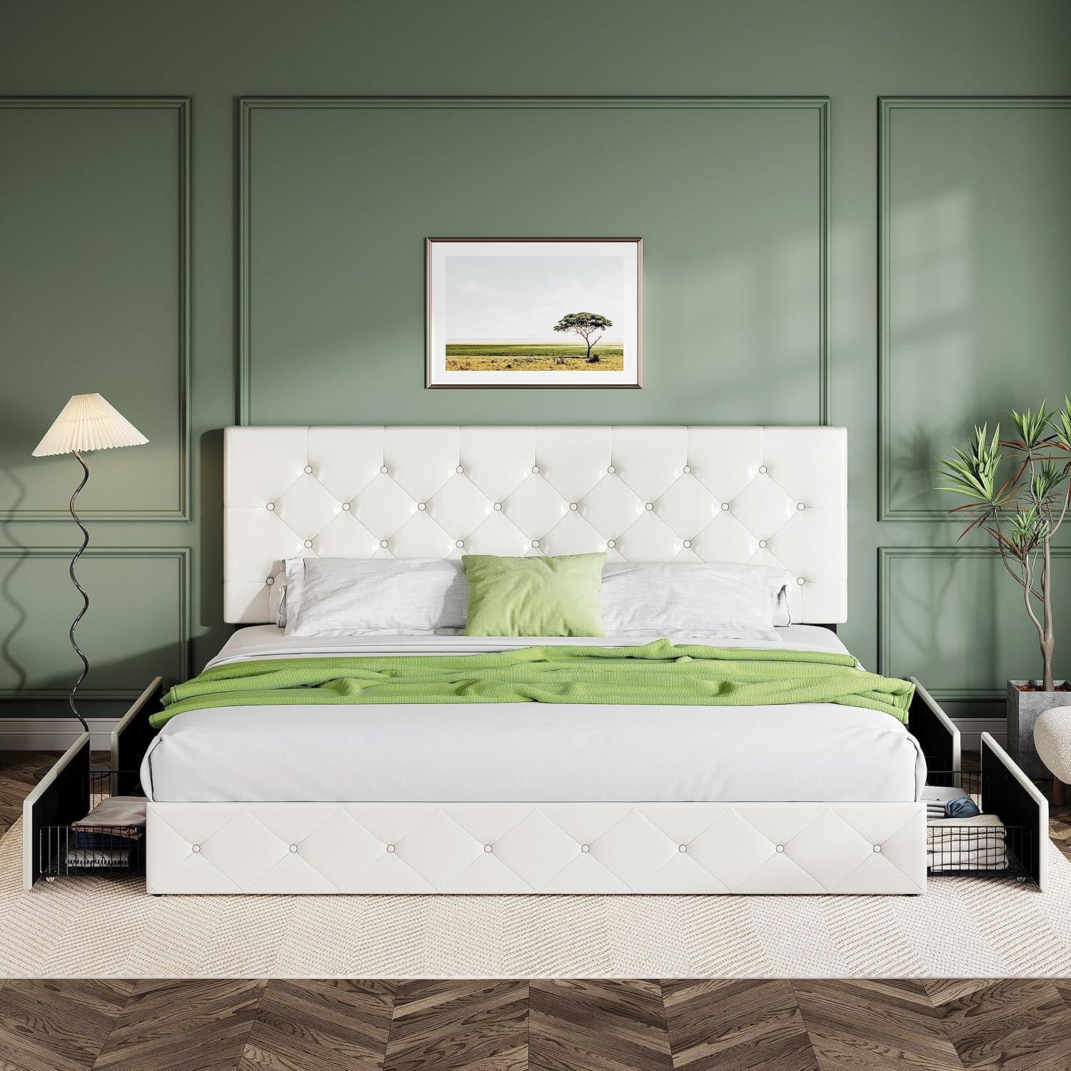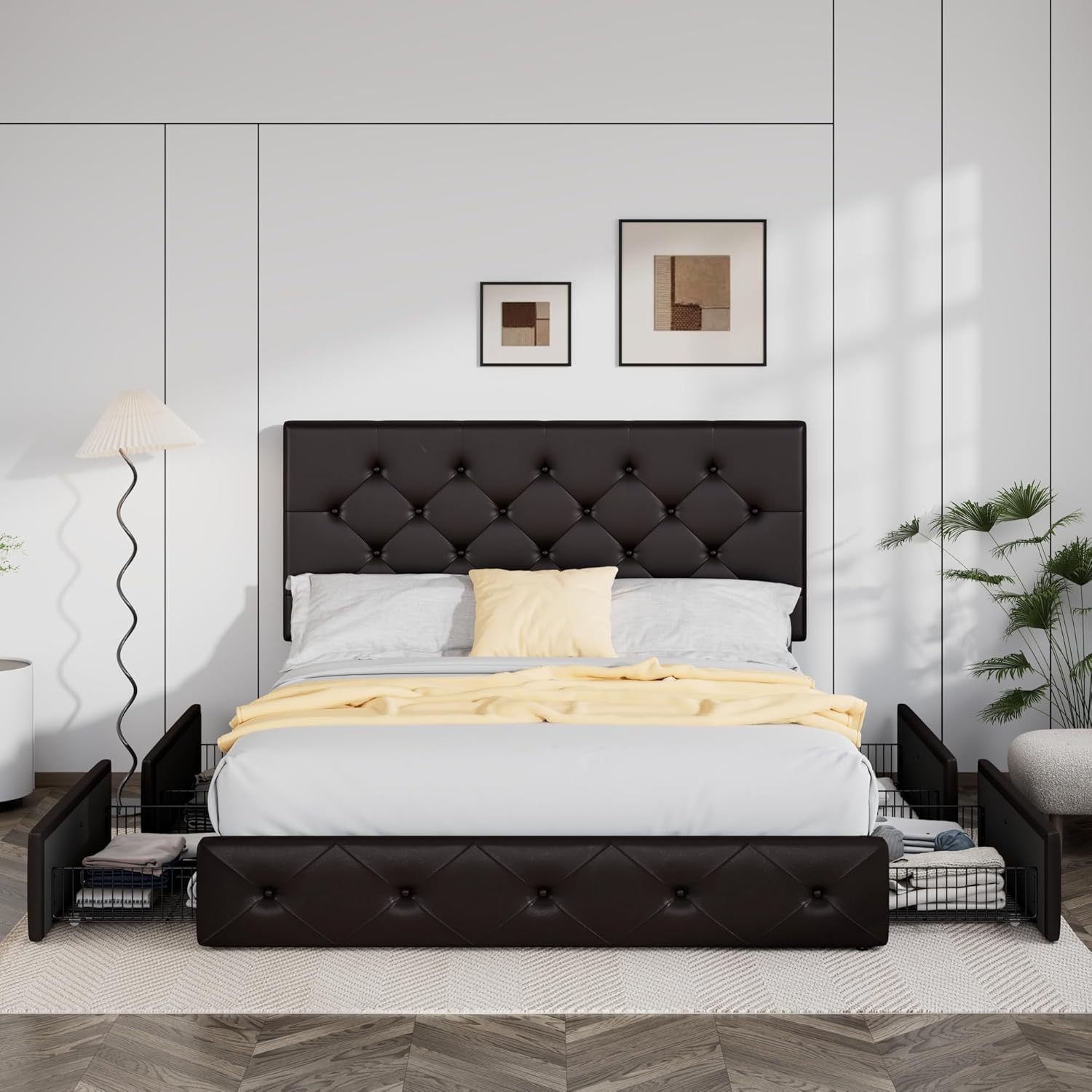 - Space-saving Functionality: With four storage drawers underneath, this queen bed frame offers perfect storage space for bed sheets, accessories, off-season clothing, etc