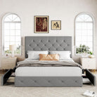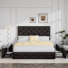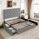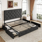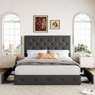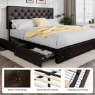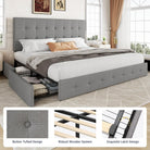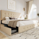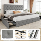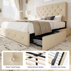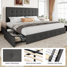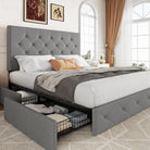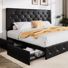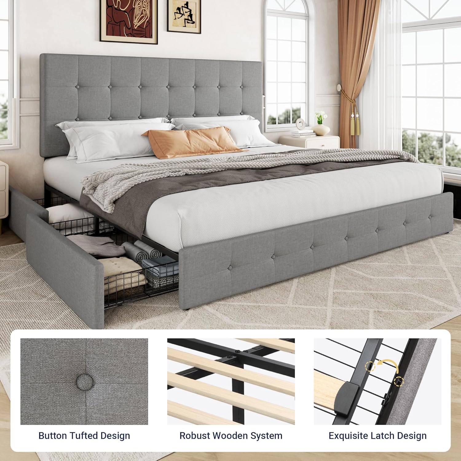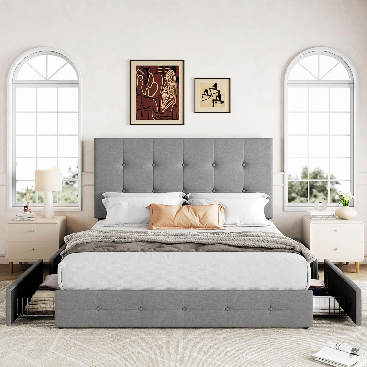 Allewie Upholstered Queen Size Platform Bed Frame with 4 Storage Drawers and Headboard, Square Stitched Button Tufted, Mattress Foundation with Wooden Slats Support, No Box Spring Needed