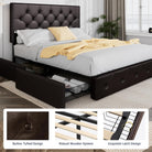 - No Box Spring Needed: Designed with strong wood slats support, this queen bed frame with drawers does not require a box spring or any other additional foundations