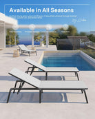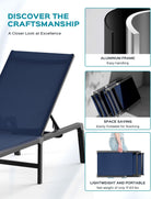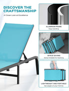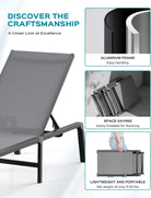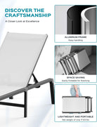 • 【EASY MAINTENANCE】This chaise lounge boasts a robust aluminum frame and premium Texitilene fabric. Durable and weather-resistant, the lightweight Texitilene material is breathable and quick-drying, ensuring air circulation and ventilation on hot days for optimal comfort