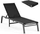 Aluminum Chaise Lounge Ourdoor - Foldable & Assemble Free Outdoor Lounge Chair with 5 Adjustable Backrest, Patio Lounge Chair for Outside Poolside Beach Pool, Black