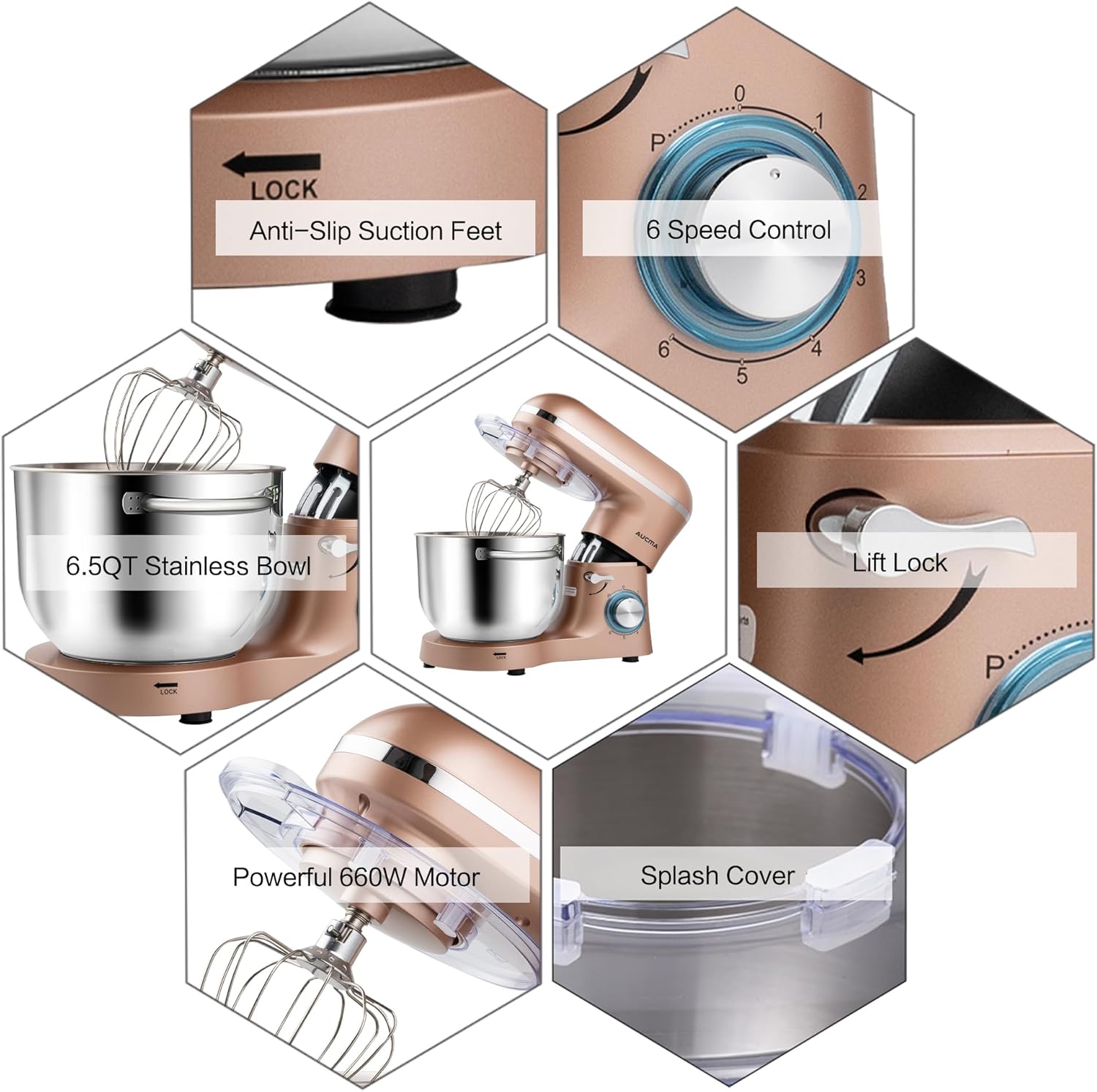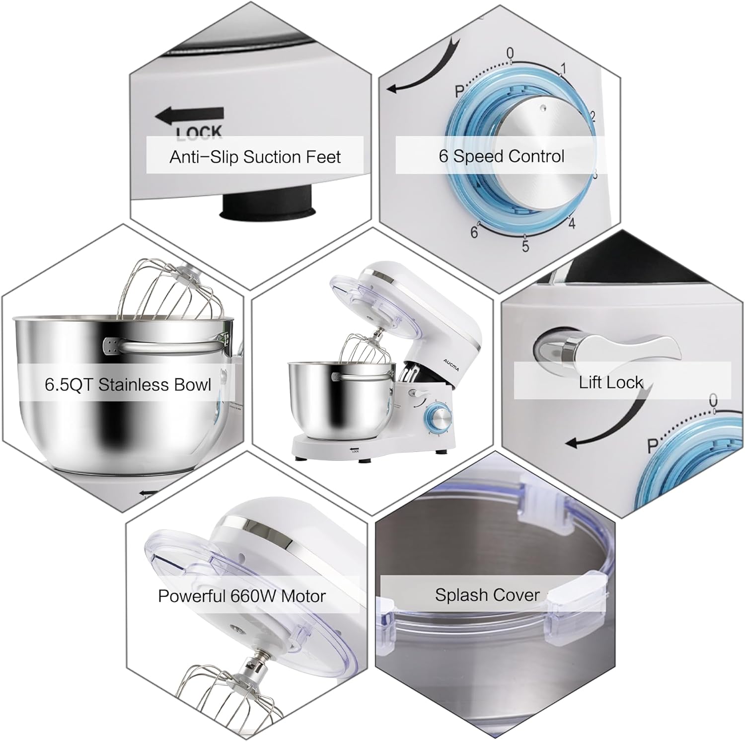 Aucma Stand Mixer,6.5-QT 660W 6-Speed Tilt-Head Food Mixer, Kitchen Electric Mixer with Dough Hook
