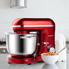 - Tilt Head and Outside Design - The tilt-head design mixer allows access to install or uninstall bowl and accessories easily. The kitchen mixer has a stainless steel decoration belt and blue LED light as power indicator. The Red housing with TWO LAYER PAINTING make it look more shining and beautiful in your kitchen.