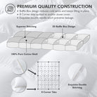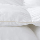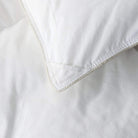 Double needle stitches have stronger seams and prevents the fill from escaping the baffle boxes. Elegant piping and cording on the double needle stitching adds durability to the edge of the comforter which is usually the high wear area and avoids leakage.