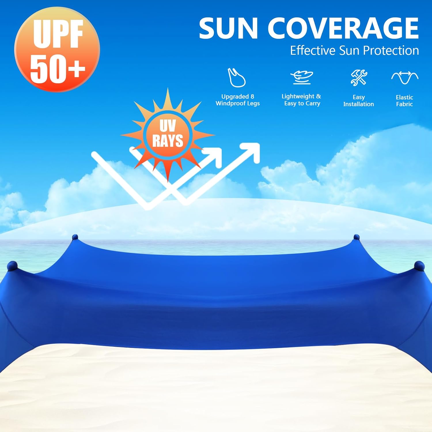 - UPF 50+ Sun Shelter Protection - The UPF 50+ fabric blocks 99% of harmful UV rays, keeping you safe from sunburn all day. Enjoy worry-free shade under this beach tent sun shelter.