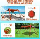 - Windproof & Sturdy Beach Tent - Upgraded with 8 sandbags, 4 reinforced aluminum poles, and 4 windproof ropes, our beach canopy stays secure against strong coastal winds—no collapsing, just reliable shade and stability.