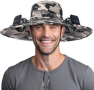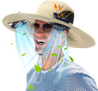 Berlune Men Sun Hat with 2 Solar Fan Fishing Wide Brim Sun Hat for Outdoor Summer Camping Beach, USB & Solar Powered