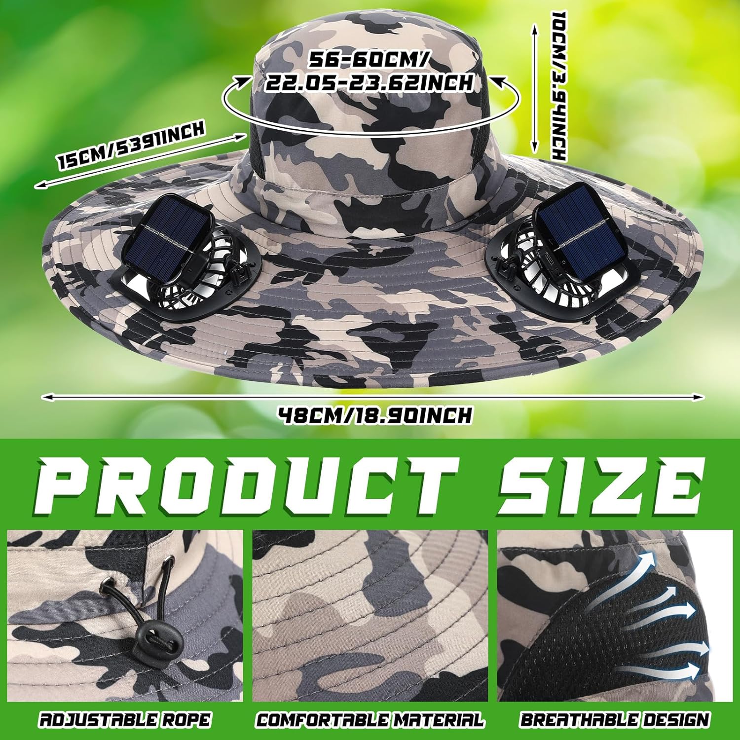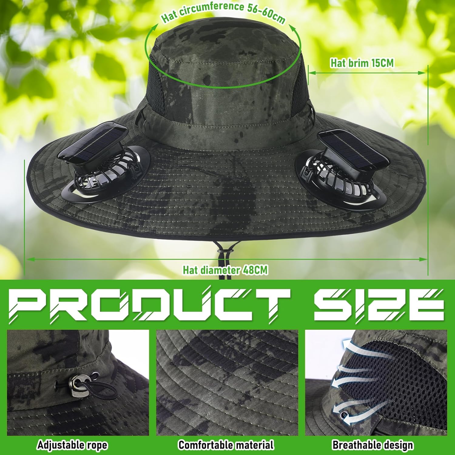 • Effective Sun Protection and Comfortable Material: our solar cooling hat is designed with 2 fans on both sides of the hat, and the adjustable drawstring makes it more convenient for you to wear; The hat with fan is mainly made of nylon, which is soft and breathable, easy to absorb sweat and dissipate heat, and will not add too much weight to you, which can bring you a comfortable use experience; This hat is suitable for most people and is an ideal choice for effective sun protection