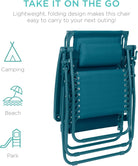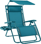 Best Choice Products Folding Zero Gravity Outdoor Recliner Patio Lounge Chair w/Adjustable Canopy Shade, Headrest, Side Accessory Tray, Textilene Mesh - Peacock Blue