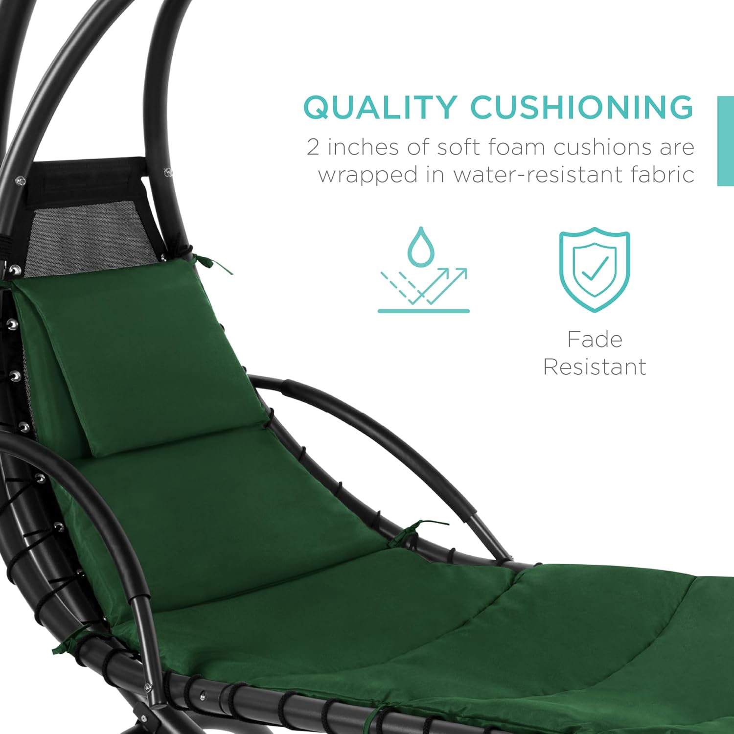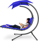 Best Choice Products Outdoor Hanging Curved Steel Chaise Lounge Chair Swing w/Built-in Pillow and Removable Canopy - Charcoal Gray