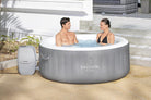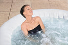• USER-FRIENDLY DESIGN: The round tub shape is 71" x 26" and fits up to 2-4 persons, making it a great addition to your patio or backyard. The included pump inflates, runs filtration and the AirJet system which can be managed from the digital control panel. It also acts as a tray and cup holder.