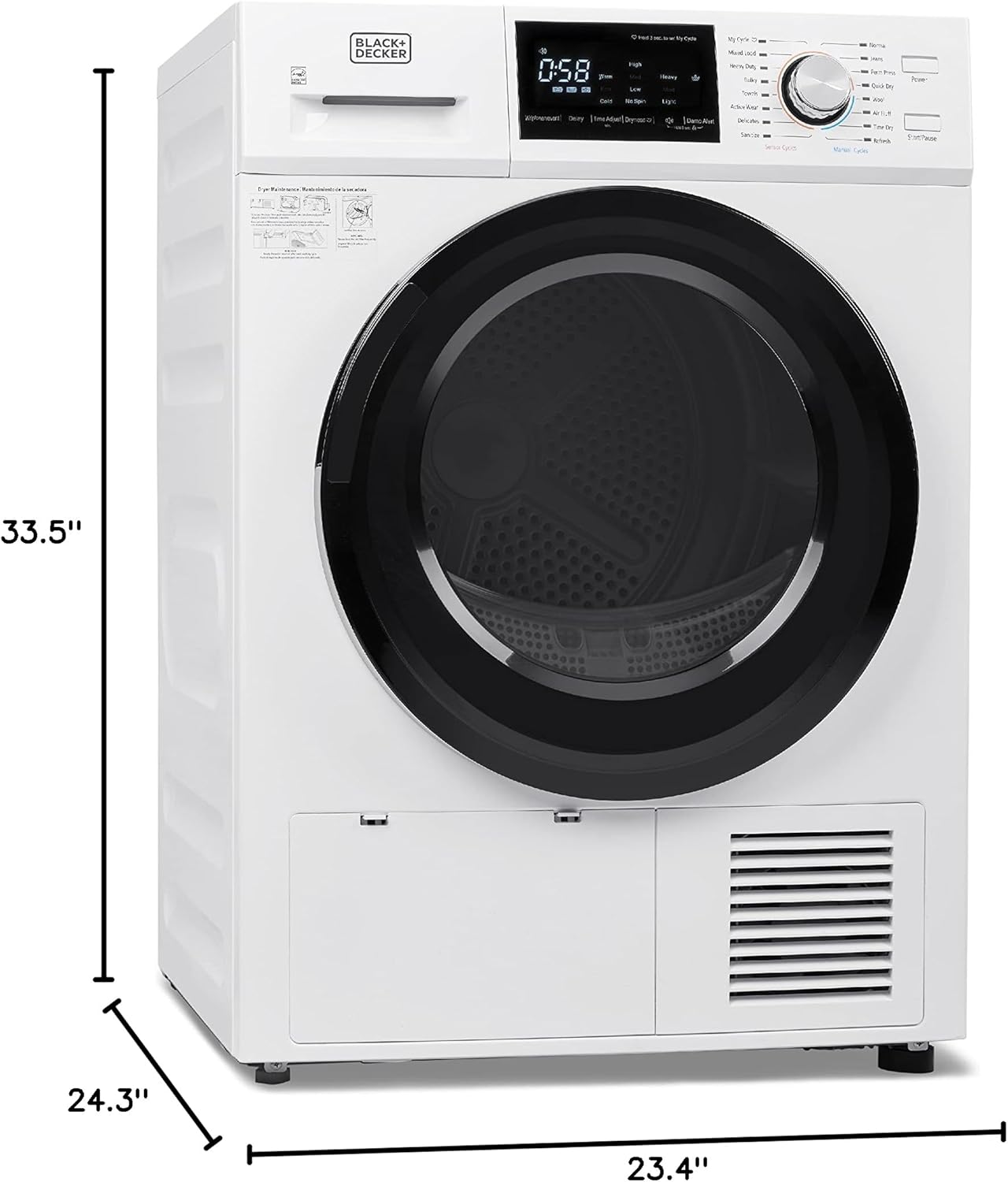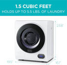 This small dryer has a capacity of 1.5 cu. ft. and can withhold 5.5 lbs. of laundry per load. Also included is overheat protection for your safety, as well as a double layer lint filter.