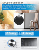 Choose High Temperature Drying, Air Dry, Anti-Wrinkle, and Sensor Dry—which measures moisture and automatically adjusts the heat for a more efficient drying performance Program drying times vary from 20-200 minutes, maneuvered with an electronic control panel.