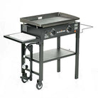 • COMFORT AT YOUR FINGERTIPS – This Griddle comes with a side shelf for placing a cutting board and a garbage bag holder. 1 Lower shelf for easy storage of food and utensils. Easily wheel around your yard or transport from your backyard to the campsite thanks to the removable griddle top, fold up legs and four industrial strength caster wheels. Side handles for easy maneuvering