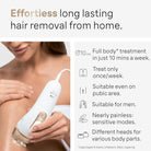 - Gentle on skin, even in the most sensitive areas (face, armpit, bikini), with two sensitive modes that reduce light intensity