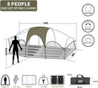 CAMPROS CP Tent 8 Person Camping Tents, Weather Resistant Family Tent, 5 Large Mesh Windows, Double Layer, Divided Curtain for Separated Room, Portable with Carry Bag