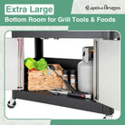 - 𝐋𝐚𝐫𝐠𝐞 𝐒𝐭𝐨𝐫𝐚𝐠𝐞 𝐂𝐚𝐛𝐢𝐧𝐞𝐭: The bottom storage space offers a convenient storage solution. Whether you need to store grilling utensils, seasonings, or a propane tank, this spacious area can easily accommodate them. This storage space not only enhances your grilling experience but also keeps the entire grilling area neat and organized