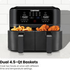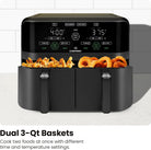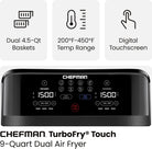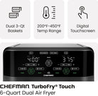 Chefman 6-Quart Dual Basket Air Fryer - Digital Touchscreen, Smart Sync Finish, High-Frying, Auto-Off, 2 Independent 3-Quart Nonstick Pans, Dishwasher-Safe Baskets