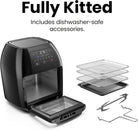 - THE ONLY PRODUCT YOU’LL NEED: This versatile product functions as an air fryer, rotisserie oven and dehydrator, perfect for nearly any cooking task. Make better-for-you fries that are just as crispy and tasty, roast a whole chicken, or dehydrate that leftover pineapple you’ve been meaning to eat.