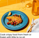 - EFFORTLESS COOKING: This multi-functional air fryer cooks faster than an oven and does not require preheating, while helping you achieve a healthy, crispy, fried finish using at least 98% less oil than traditional fryers. The capacitive touch screen display is easy to use; temperature range of 90-400 degrees and 8 preset options make any kitchen task easy – from frying and roasting to dehydrating and baking!