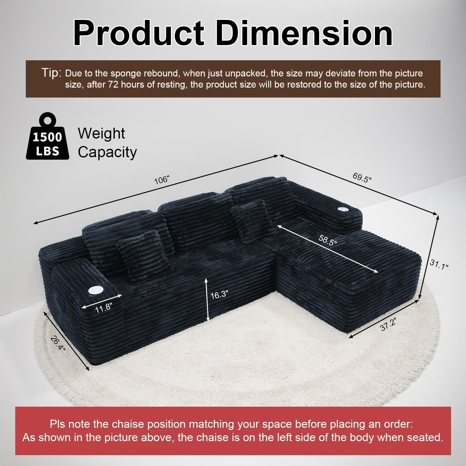| Item Dimensions D x W x H | 69.5"D x 106"W x 31.1"H |