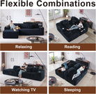 - 【Space Saving 4 in 1 Magic】Transform Your Space in Seconds. This minimalist modular sofa effortlessly reconfigures into 4 layouts: ❶ Chaise Lounge Layout - Stretch out solo; ❷ Conversation Corner - Ideal for socializing; ❸ Theater Row - Perfect for movie nights; ❹ Dual Zones - Create separate spaces. Fits 8x10ft+ rooms - Maximize small apartments or open lofts. No tools required!