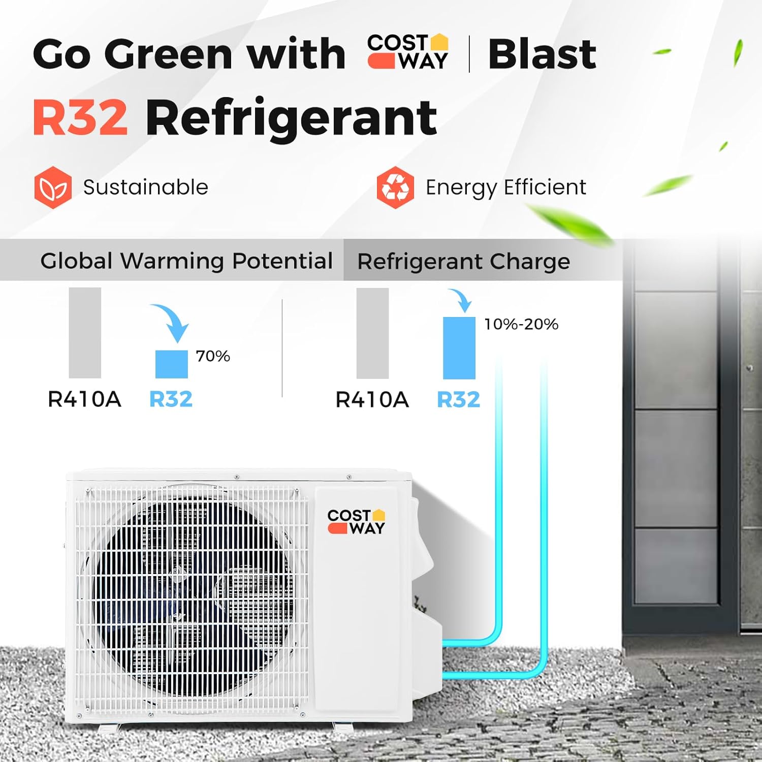 •  Tips:Pre-charged with the advanced R32 refrigerant, our mini split stands as the premier eco-conscious option. In contrast, competitors rely on outdated refrigerants, which pose greater harm to the environment. Should the need arise to supplement refrigerant levels, kindly inquire about the accessibility of R32 at your nearby vendor.