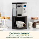 Fill up your Cuisinart Coffee on Demand 12 Cup Programmable Coffeemaker once and enjoy fresh brewed cups throughout the day! This incredible carafe-free coffeemaker uses unique Coffee on Demand technology to brew cup by cup, ensuring fresh hot coffee is always on hand. With the removable water reservoir, Coffee Gauge counting down cups remaining, 24-hour programmability, and adjustable auto shutoff, fresh coffee has never been so convenient!