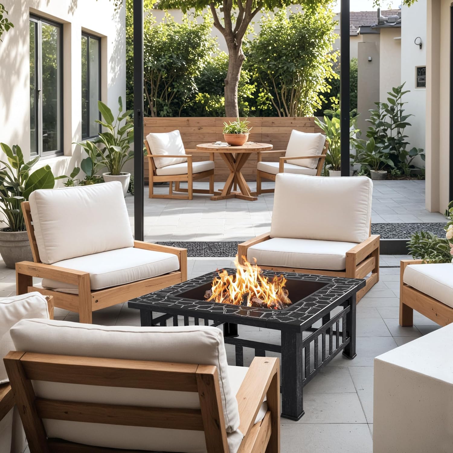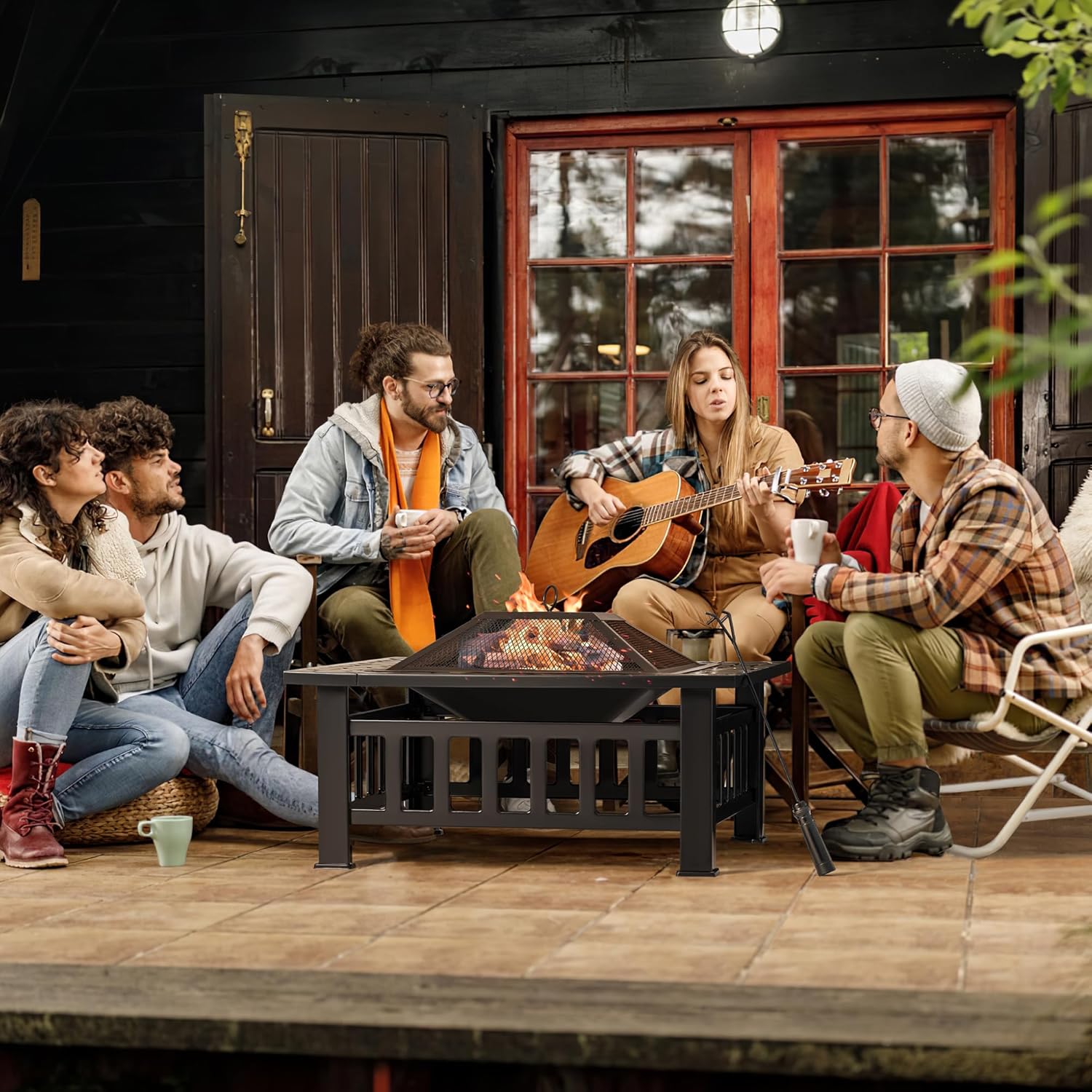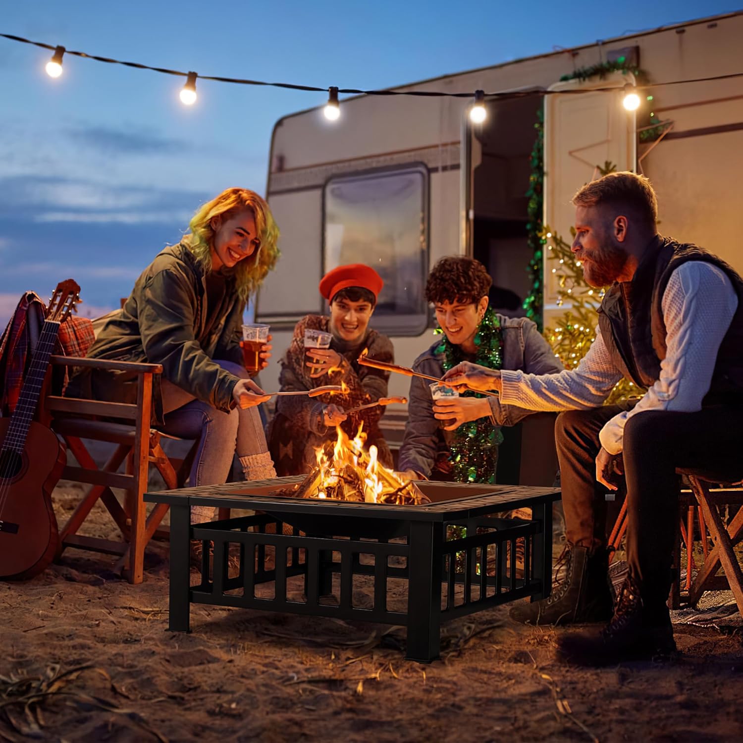 • [ Reliable Security ]: Firepit table features square design with sturdy legs for stability, while the mesh spark screen and poker provided effectively prevent sparks from flying and safely move the grill