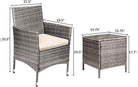 • - What We Offer: A new 3 pieces patio furniture sets, Complete installation tools, An installation instruction, Our worry-free 12-month after sale service and Friendly customer service. Including: 2 chairs (21.5"*19.5"*33.5"(L*W*H)), 1 tea table (15.75"*15.75"*17.75"(L*W*H))
