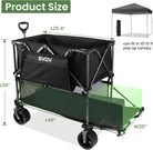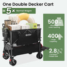 Double-decker cart, 500 lb capacity, 400 liter foldable cart, all-terrain wheels, 46" extra-long extension cart, foldable cart