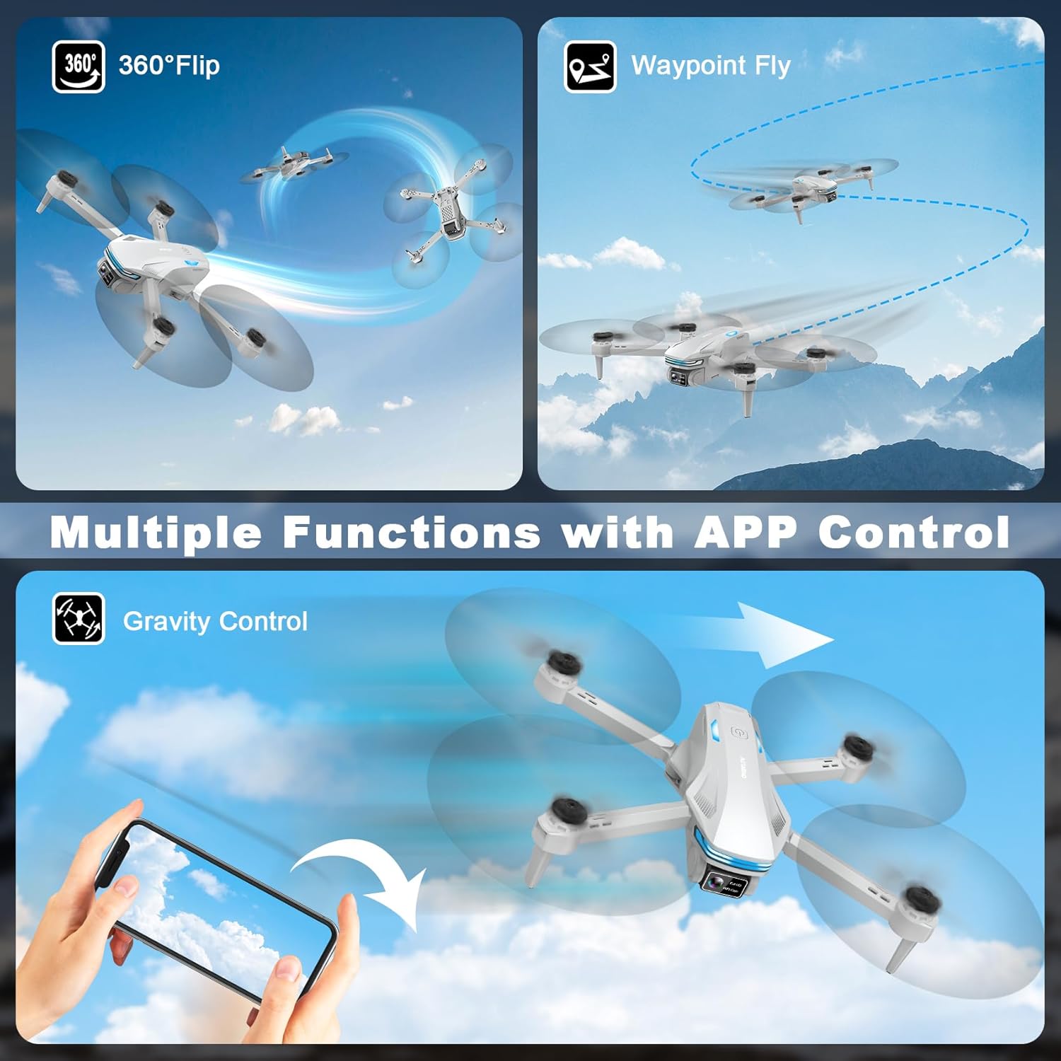 - 【User-friendly and Versatile】Loiley drones are perfect for beginners and children, offering features like one-key takeoff/landing, altitude hold, emergency stop, and headless mode. It also provides smart app control (APP name: Loiley Fly), allowing users to define flight routes, use voice control and gesture selfies, and enjoy various functions like 360° flips, gravity sensing, and adding music and filters