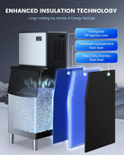 - Quiet and Easy to Use: Experience ice-making tranquility with this whisper-quiet machine, under 35 dB, comparable to a running fridge. Infrared sensors stop ice production when full, and a low water reminder makes it stress-free