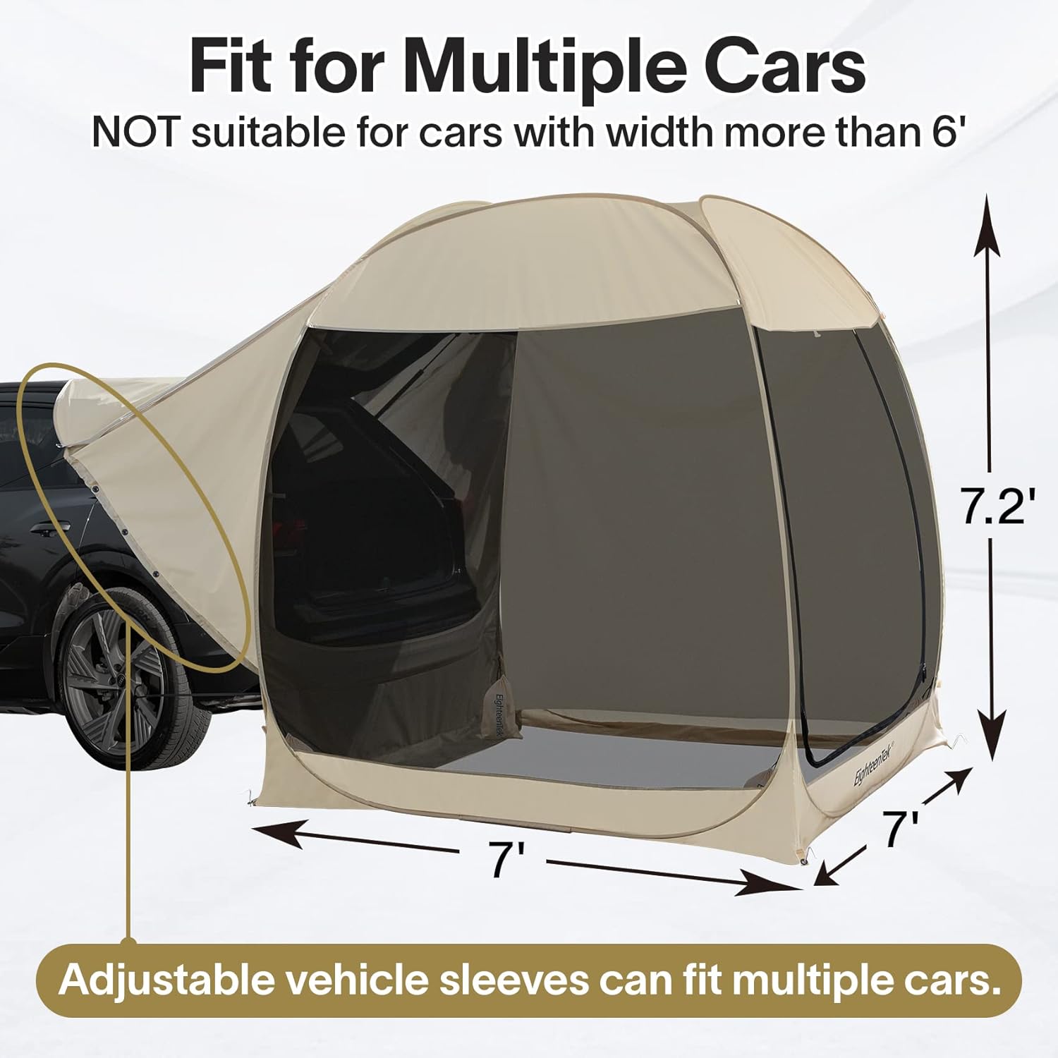 - VERSATILE USAGE: EighteenTek camping SUV trunk tent creates an instant shelter for rest when travelling. Disconnected with the vehicle, it is also used as a stand-alone screen house tent, just like still in your garden, or backyard during outdoor travel. Meet your versatile demands.