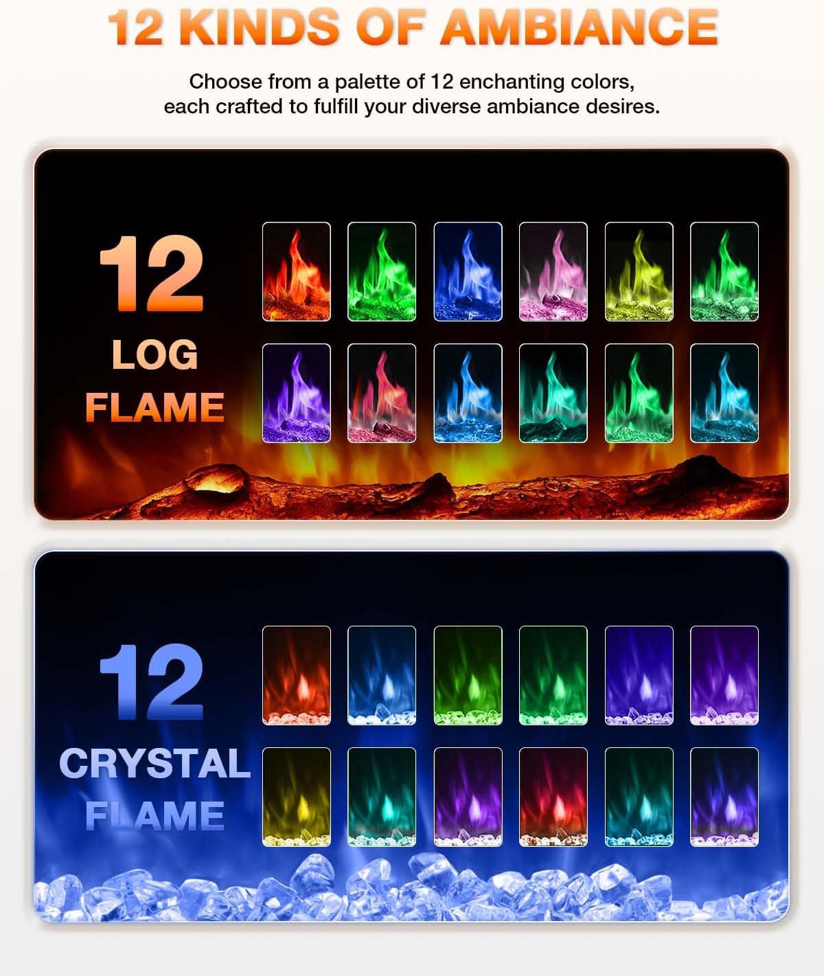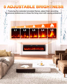 • Brightness and Flame Variety: The VISVEIL Electric Fireplace offers five adjustable brightness levels, complete with 12 types of realistic log flames and 12 types of crystal flames. Whether it's in the living room, bedroom, or basement, you can easily adjust the settings to create your ideal ambiance