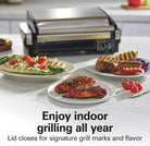 Electric Indoor Searing Grill with Viewing Window & Adjustable Temperature Control to 450F, 118 sq. in. Surface Serves 6, PFAS-Free Removable Nonstick Grate, Stainless Steel