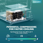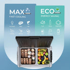 Powerful Compressor & Excellent Insulation; The car refrigerator is equipped with a high-efficiency variable frequency compressor, offering strong cooling capabilities with a temperature range from -4°F to 68°F. The portable freezer is UL energy certified, featuring an energy-saving ECO mode and a fast cooling MAX mode. The casing of car fridge is made of composite insulation and wear-resistant materials, ensuring superior insulation and protection during your trip