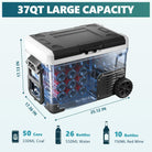 User-Friendly Design & Silent Operation; The car cooler is equipped with a simple LCD control panel for easy temperature adjustments. The inner aluminum film material improves heat preservation performance. The 12 volt cooler operates silently at just 40 decibels and has anti-shock design, functioning smoothly on rugged slopes up to 30 degrees