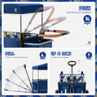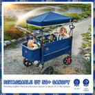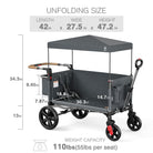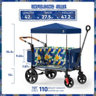 - SAFE FOR KIDS: Toddler stroller built-in 5-point harness belt and 2 face-to face seats. Heavy duty steel frame holds up to 110lbs(55lbs per seat). Foot brakes on each wheel to control 360° rotating and linear rolling. Children wagon with canopy made of UPF 50-plus fabric shield sensitive skin from the sun’s harmful rays. Our foldable wagon strollers have the JPMA certified meet ASTM standard