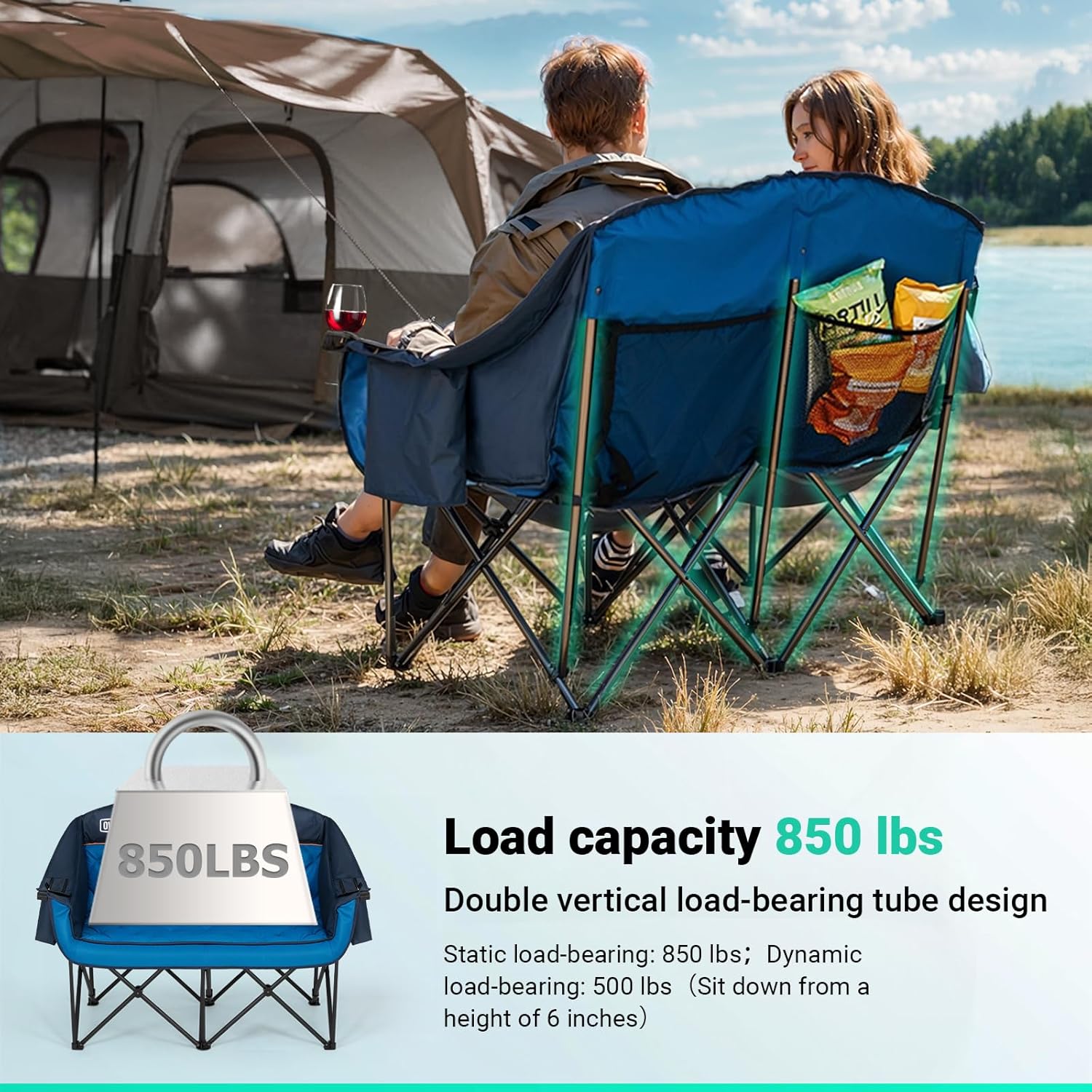 Extra Large Double Camping Chair - 2 Person Comfortable Sofa Chair Adult Loveseat - Heavy Duty Lawn Chair