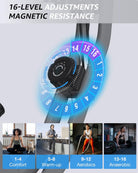- 16-LEVEL MAGNETIC RESISTANCE FOR ULTIMATE WORKOUT CONTROL: Take your workout to the next level with our bike's 16-level magnetic resistance system! Equipped with four high-grade magnets and a 6.6-pound aluminum-rimmed flywheel, this indoor bike provides seamless and whisper-quiet resistance adjustments. Whether you're just starting out or a seasoned athlete, you can easily find the ideal challenge to push your limits.