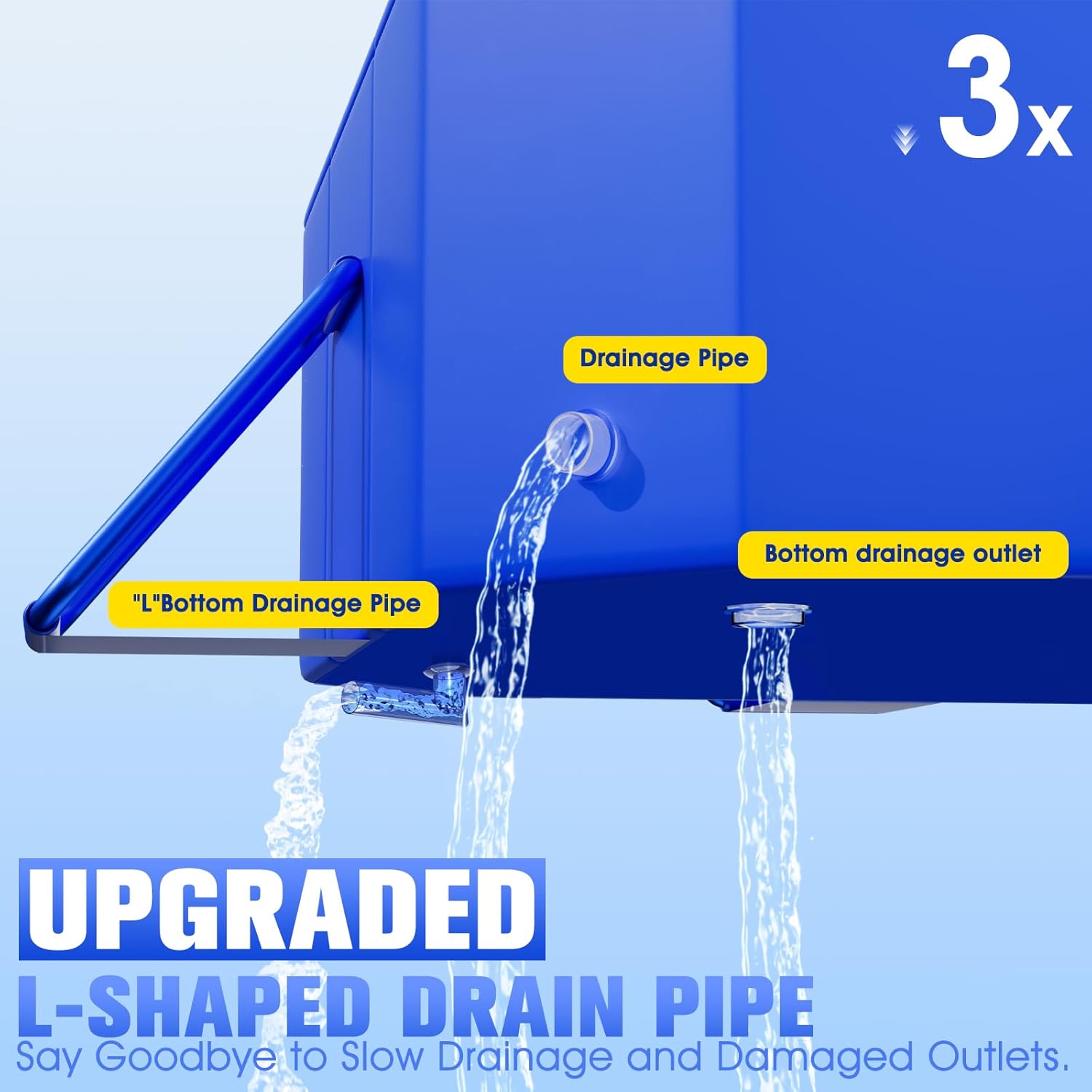• Effortless Storage, Eternal Pleasure:Folding this pvc pool is a breeze! Just 4 steps, and it's ready to be stashed away. It shrinks down to 75% of its original size. And those L-shaped drainage holes? They're a game-changer! drain water 32% faster than traditional ones, with a maximum flow rate of 19 gallons per minute, no inflation hassles, allowing users to quickly assemble the portable pool and start enjoying their aquatic experience